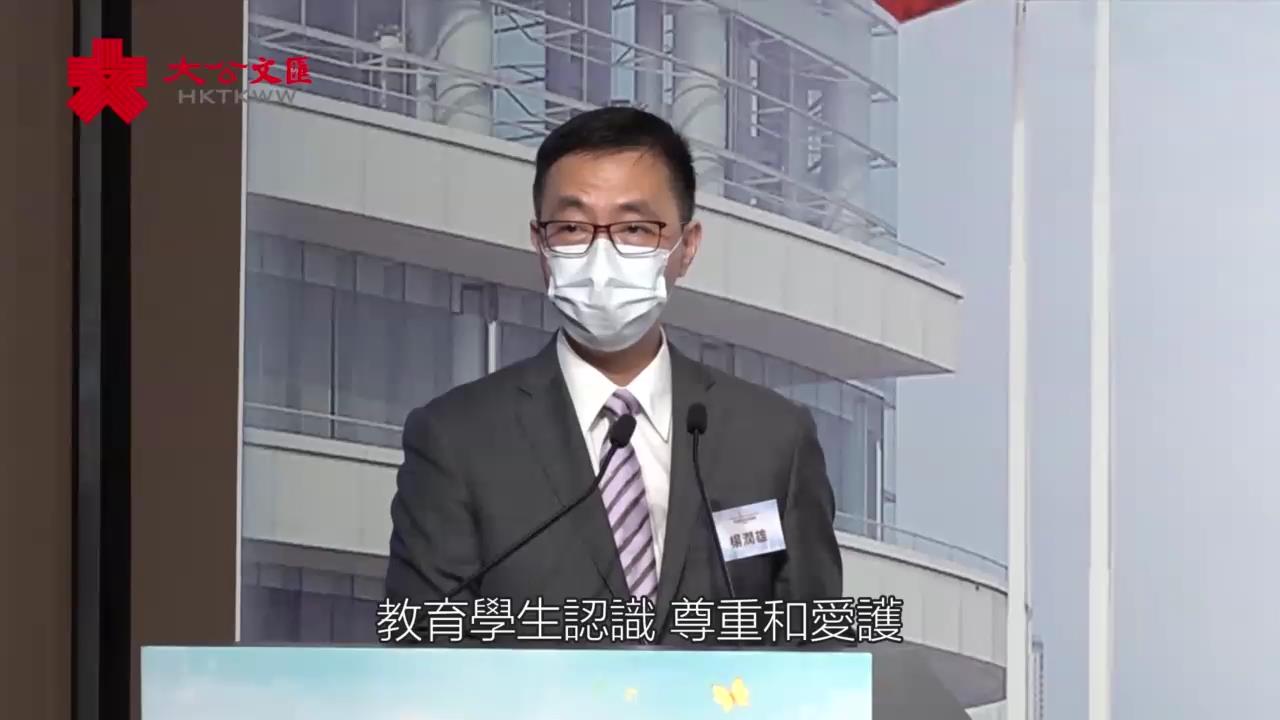 由香港文匯報與教聯會共同舉辦的香港教育高峰論壇今日(11日)上午在香港會展中心舉行,論壇深入探討香港國安法與《國歌條例》在學校教學中的落實。教育局局長楊潤雄在演講時表示,「一國兩制」是香港繁榮的基石,推廣有關工作是「應有之責」,國安法落實後教育局將為學校提供不同的支援服務,包括培訓、內地交流、並增加教育資源,為學生建立正確價值觀。